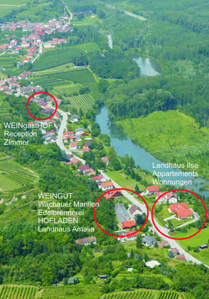 Am östlichen Orsteingang finden Sie das Familienweingut, gegenüber das Landhaus Ilse. 500m weiter ist unseren WEINgastHOF